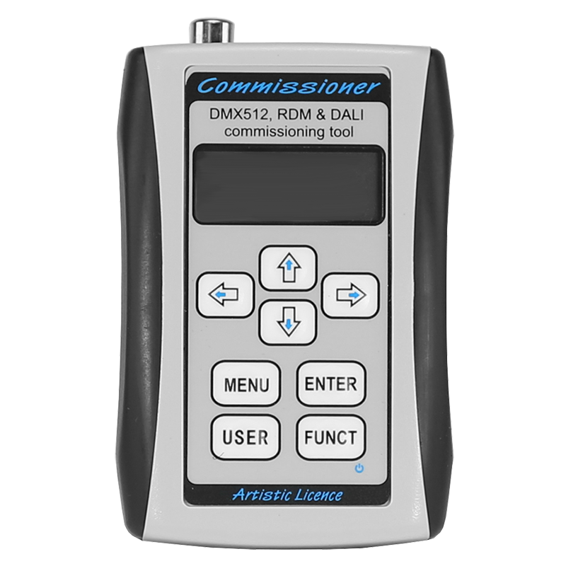 Commissioner RDMX es una herramienta portátil para probar, programar y configurar instalaciones o accesorios de iluminación. Soporta DMX512, RDM y Dali.