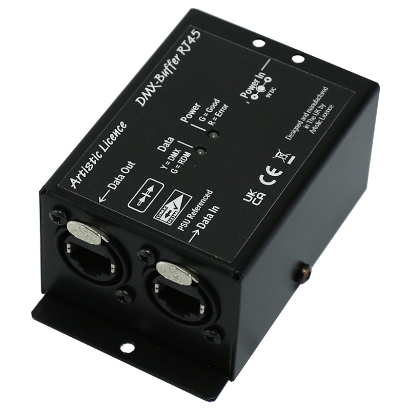 DMX-Buffer le permite recorrer esa distancia adicional al volver a almacenar en búfer una línea DMX, lo que le brinda 300 m adicionales. Alojado en una carcasa metálica protectora y alimentado desde una fuente de alimentación estándar de 9 V con un conector jack de CC, la instalación y el uso del DMX-Buffer no podrían ser más sencillos.