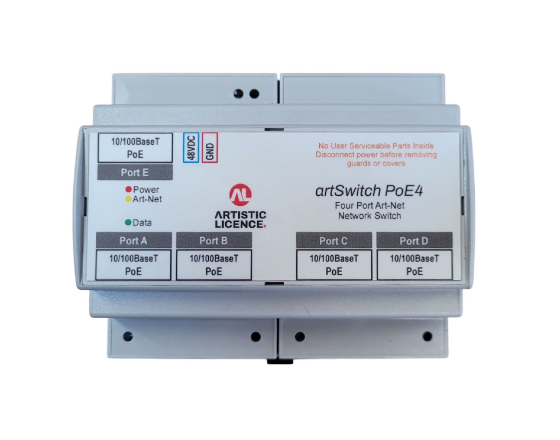 artSwitch PoE is an un-managed 5 port 10/100Mbps network switch, four ports of which provide PoE.
