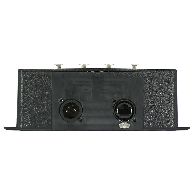 The ports are bidirectional and can also convert DMX to Art-Net/sACN. The product is housed in a strong but lightweight black ABS plastic case and features an RJ45 Ethercon network connector and four XLR5 data ports.
