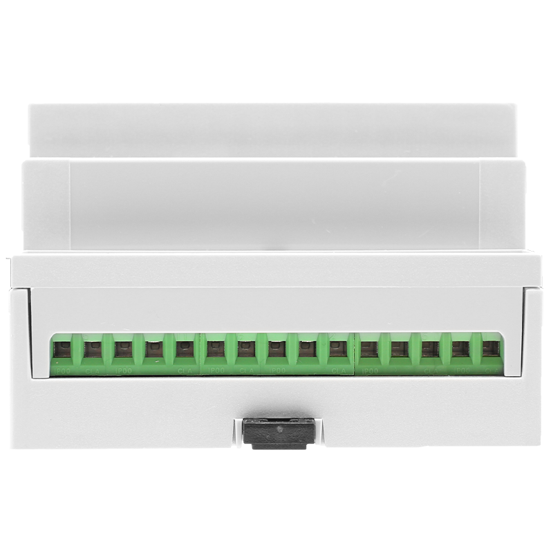 Rail-Contact monitors the state of 8 contact closures and translates this into a value on DMX channels 1 to 8. When a contact closure is active the corresponding value of DMX is 255.