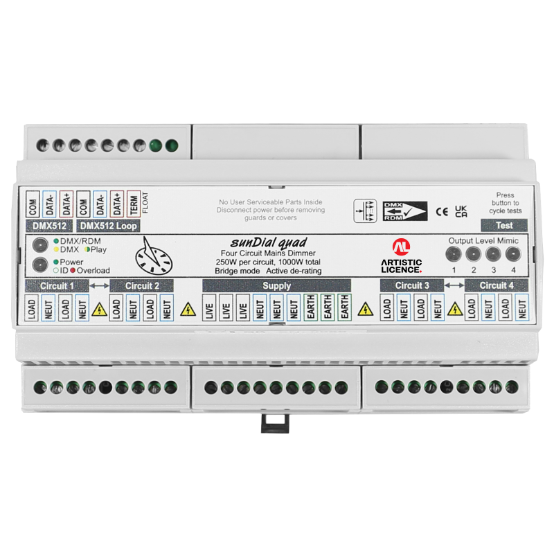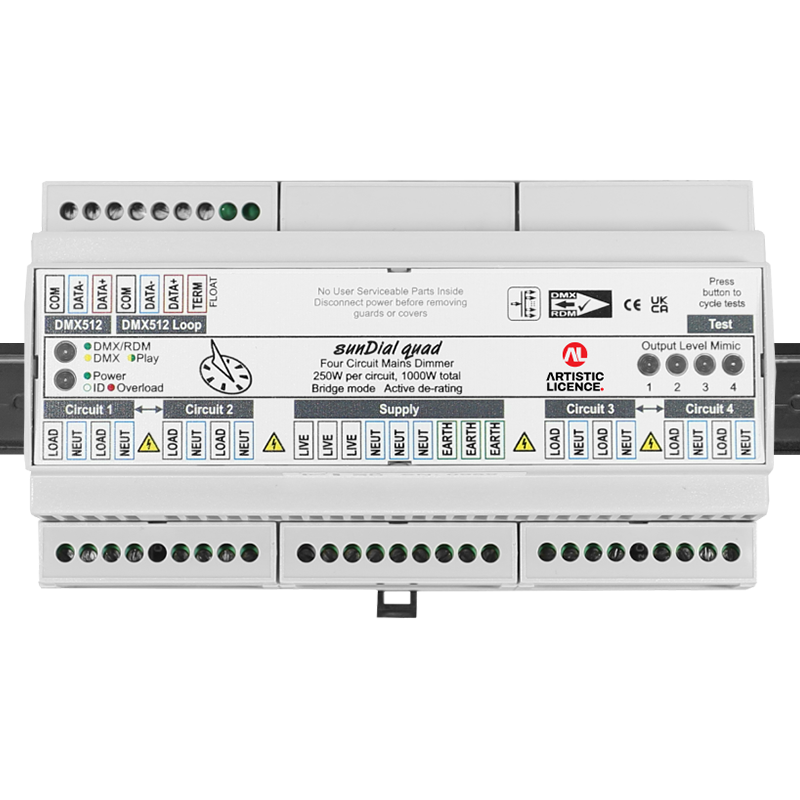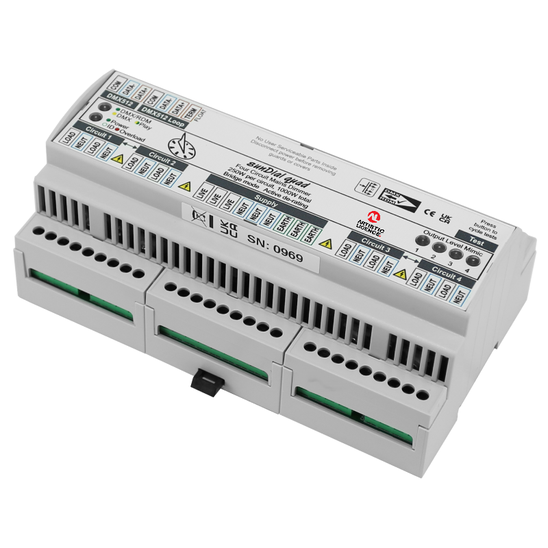 sunDial quad dmx 1k is a DMX/RDM controlled mains dimmer.